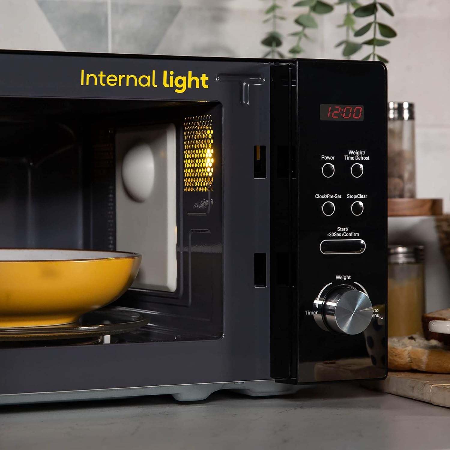 Its 20-litre capacity comfortably fits a standard 10.5-inch dinner plate, while the removable glass turntable and wipeable interior make cleaning simple. Pre-programmed auto cook menus let you cook pizza, fish, popcorn, and more at the touch of a button. The auto defrost function selects the optimal defrosting time based on the weight of your food, saving time and effort.